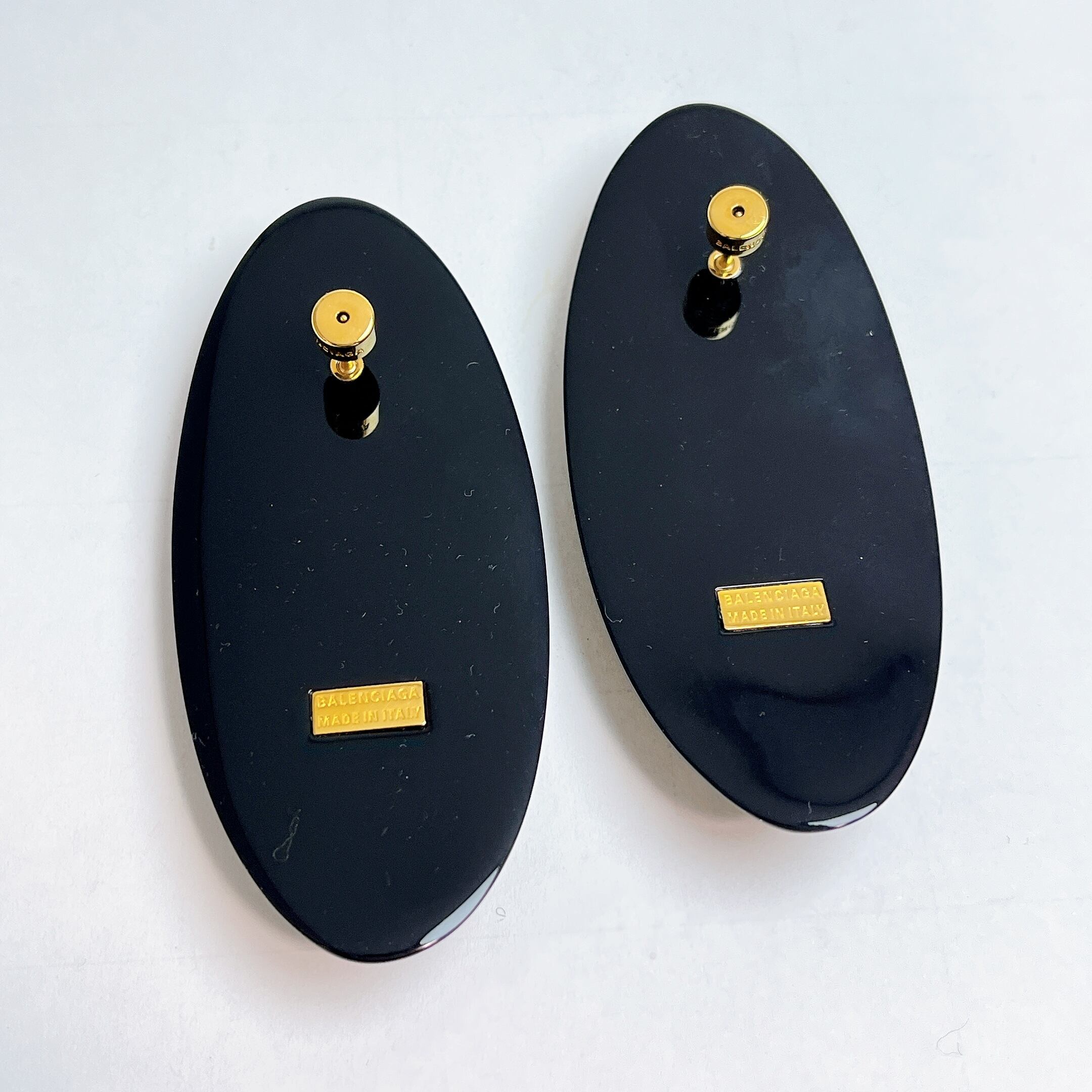 バレンシアガの象徴的なBBロゴが中央に配置され、ブランドのアイコニックなデザインを際立たせています。このロゴは、ピアス全体に存在感を持たせるポイントとなっています。