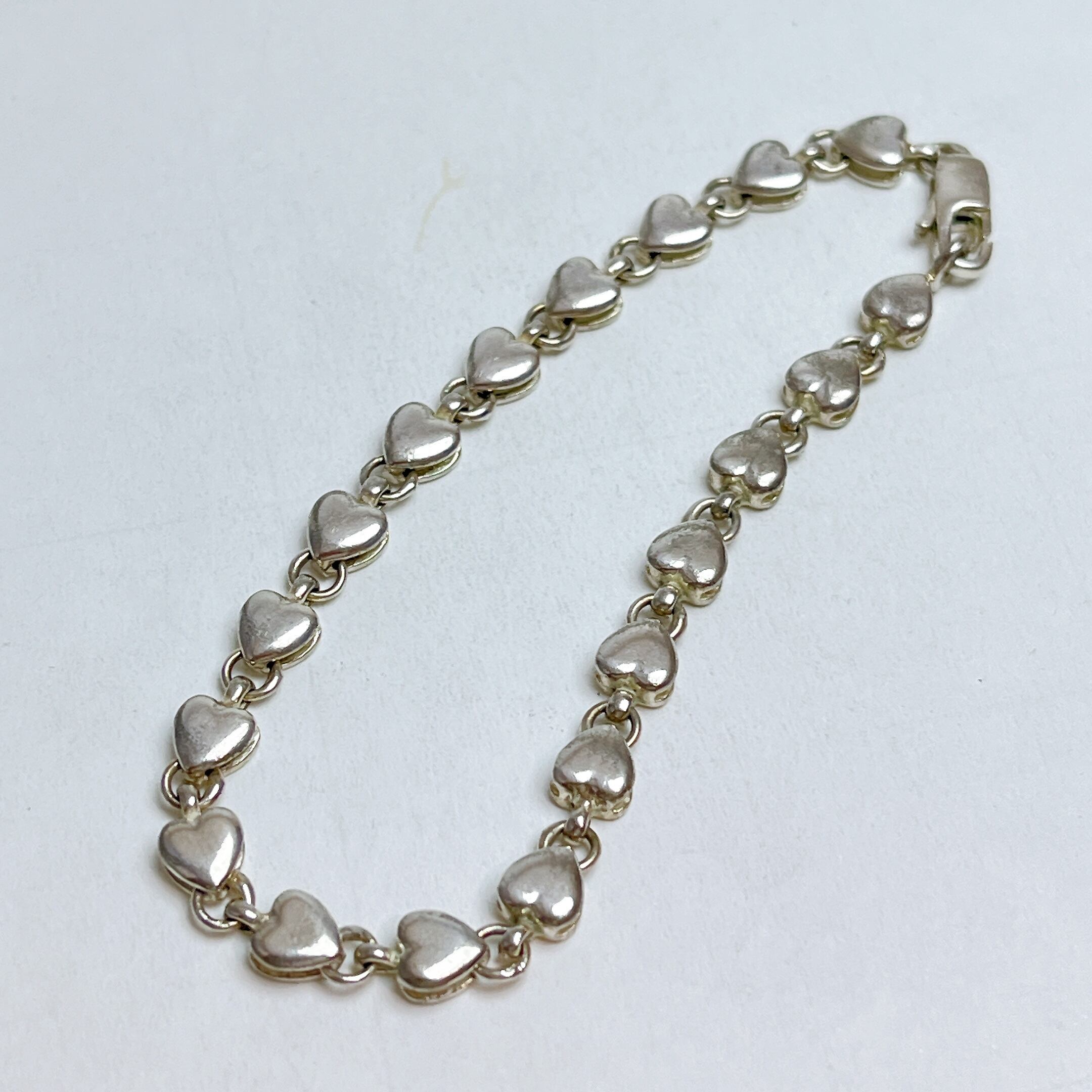 商品説明:ティファニーの定番人気アイテム「パフハート ブレスレット」は、ふっくらとした立体的なハートモチーフが連なった、愛らしさと上品さを兼ね備えたデザインです。スターリングシルバー(シルバー925)製で、シンプルながらも存在感があり、カジュアルからフォーマルまで幅広いスタイルにマッチします。