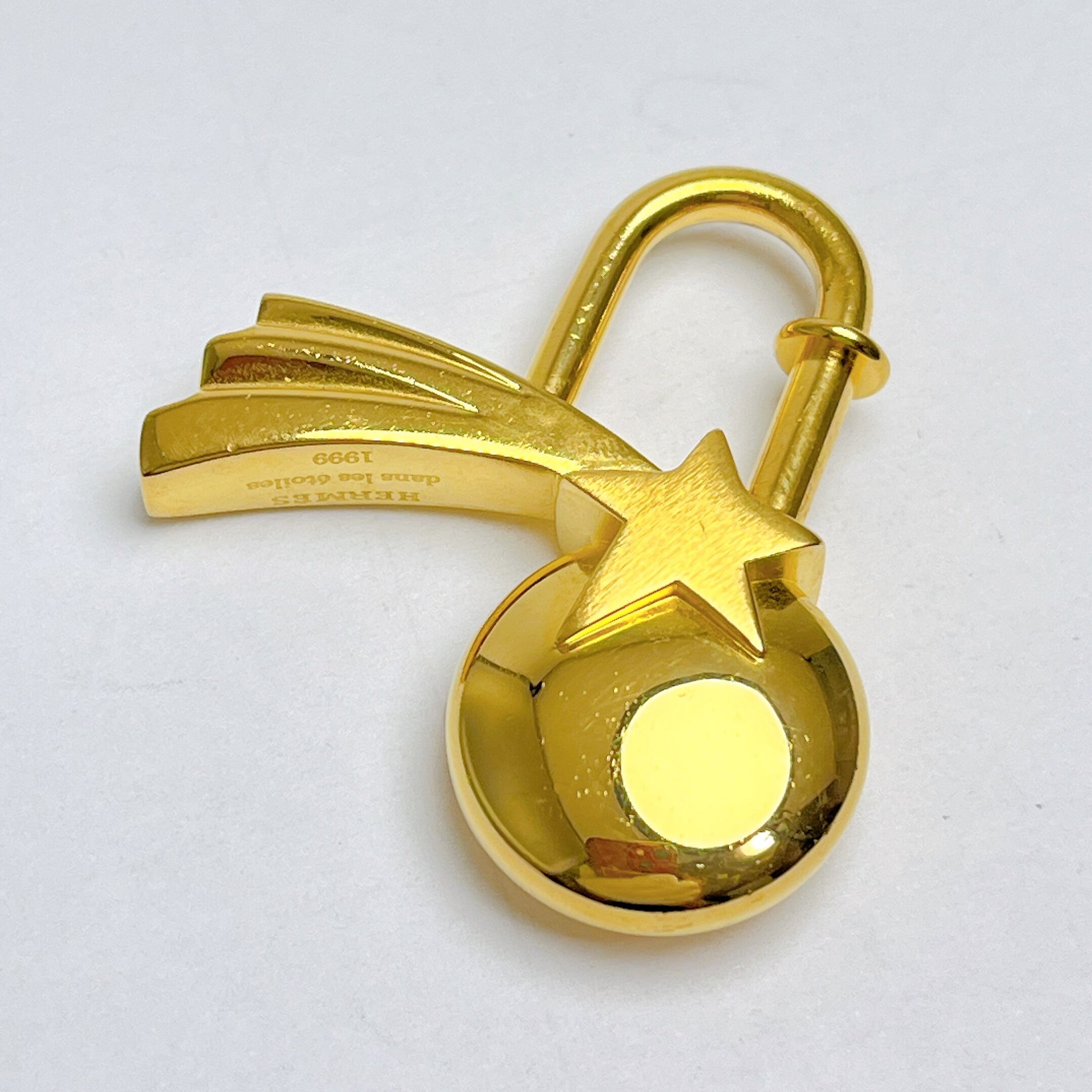 商品説明:エルメスの「シューティングスター(流れ星)」モチーフのカデナ(チェーンタイプのロックチャーム)—ゴールドメタルは、1999年の限定アイテムで非常に珍しく、コレクターズアイテムとして人気です。
