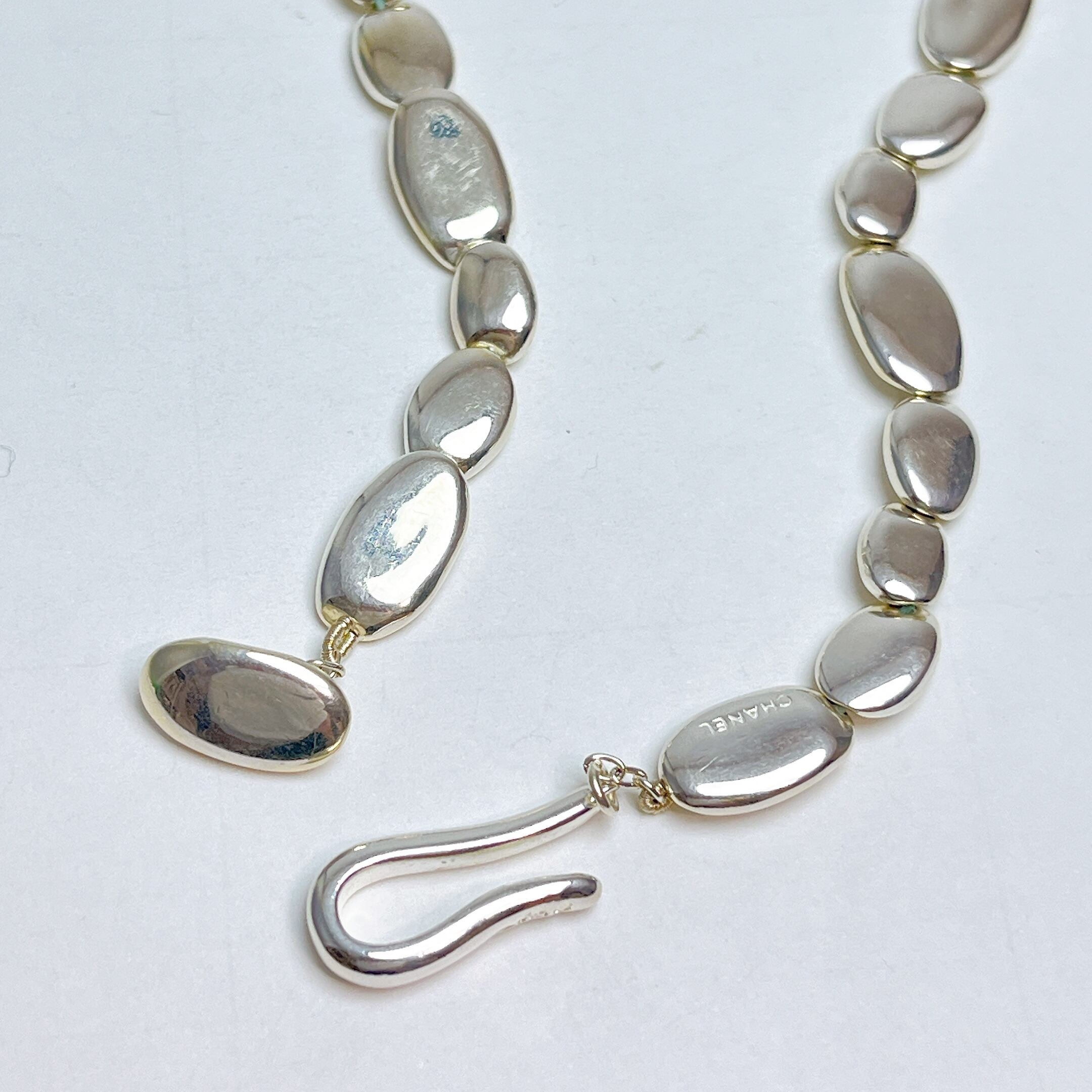 2070 シャネル ヴィンテージ オーバル リンク ビーズ ネックレス 925