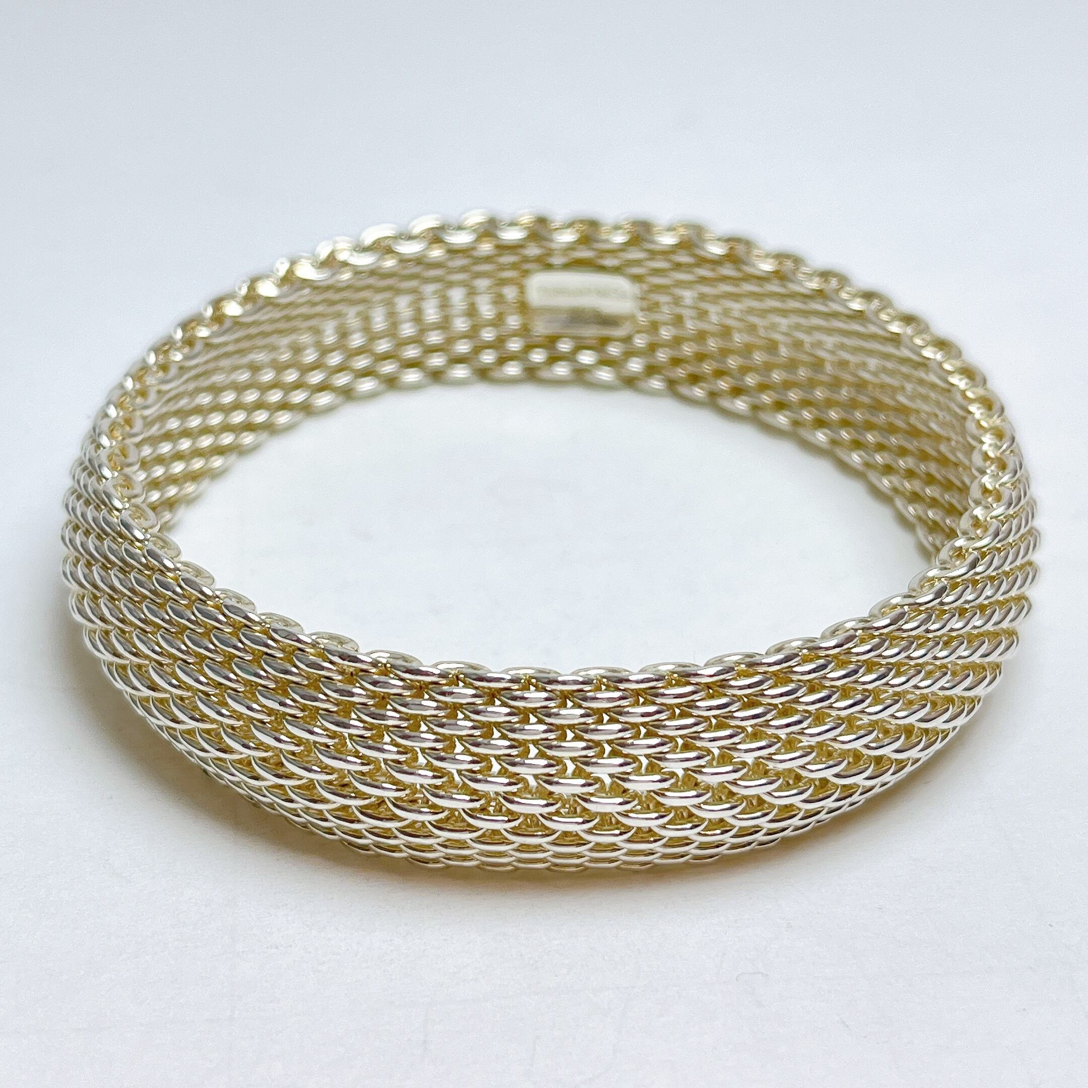 商品説明:ティファニーの「サマセット」コレクションより、洗練されたメッシュデザインのバングル。