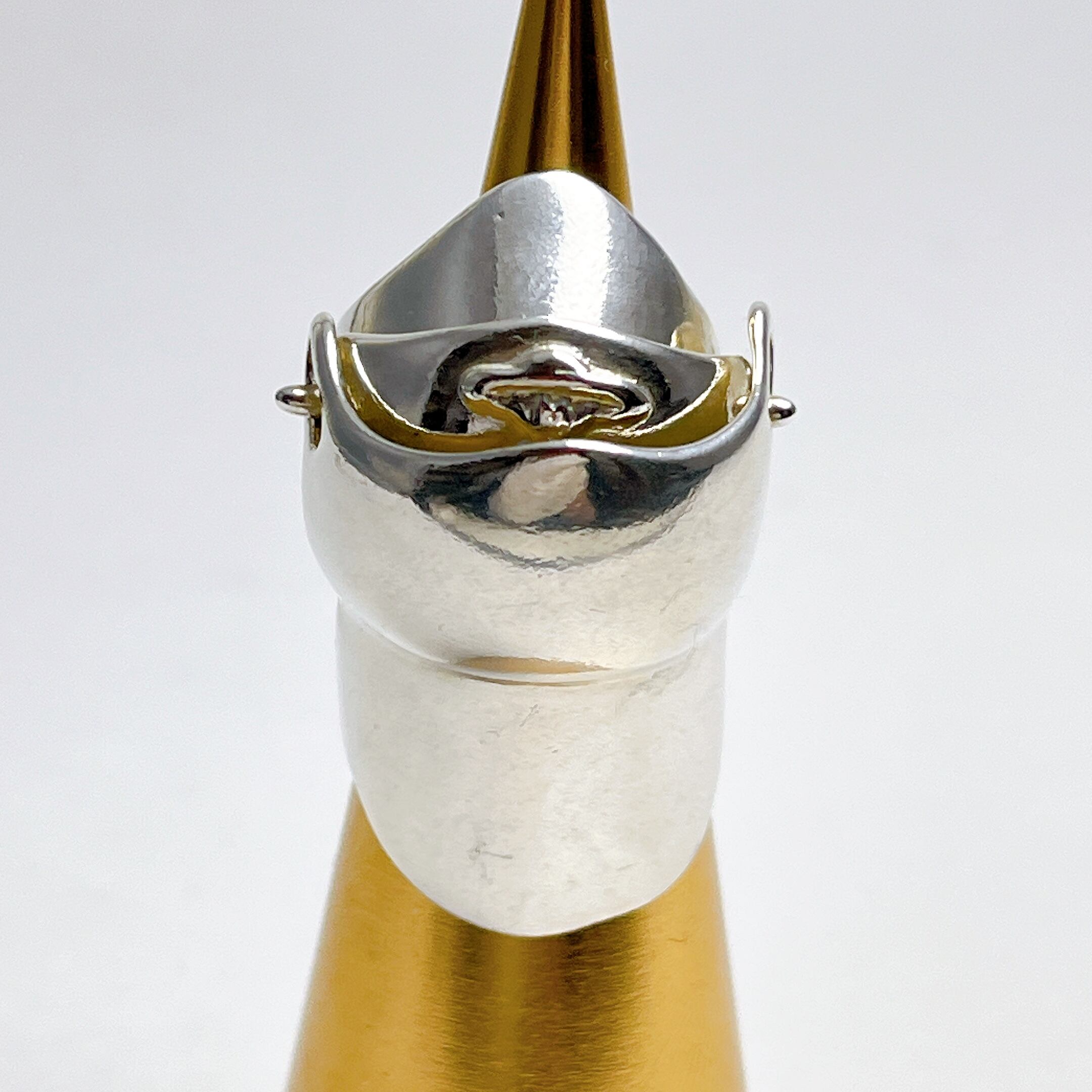 こちらはヴィンテージの希少なシルバー925製モデルです。指全体を覆うようなアーマーデザインが特徴で、ブランドらしい独創的な存在感を放ちます。サイズはM。程よい重量感と経年による味わいが魅力的な一点です。