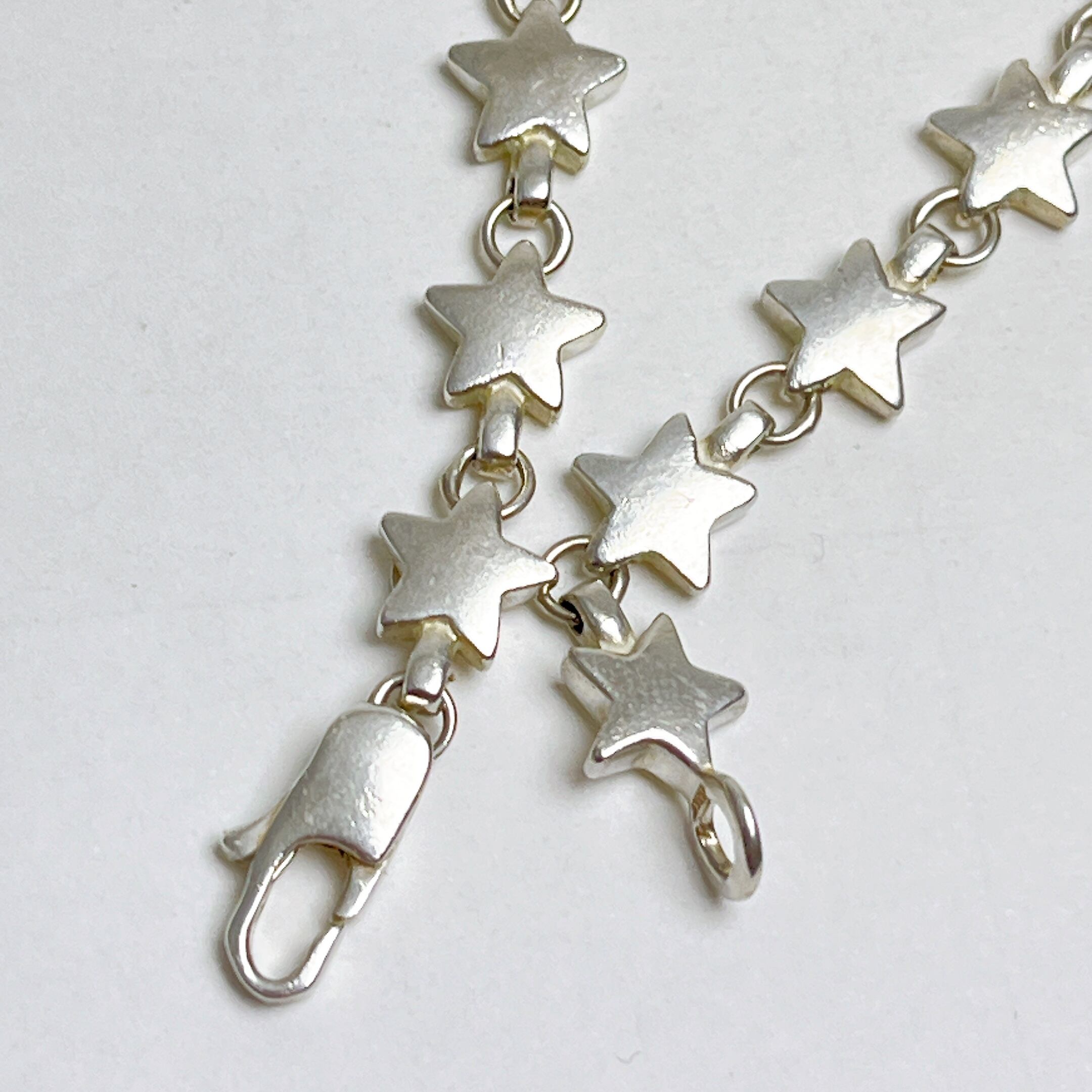 スターリングシルバーを使用した軽やかなチェーンに、ブランドアイコンであるパフスター(星型モチーフ)がアクセントとして散りばめられたデザイン。手元にさりげない華やかさと個性を添えます。