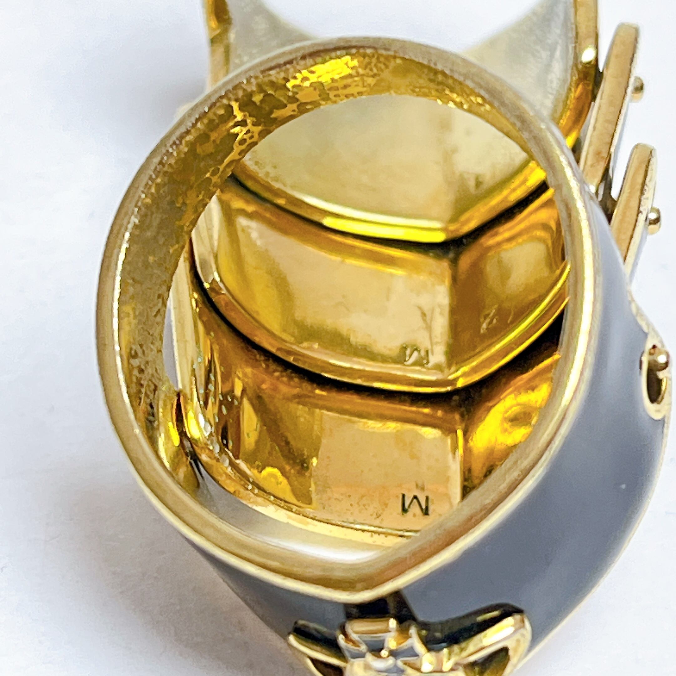 中世の甲冑をモチーフにした立体的で重厚感のあるデザインが特徴で、指全体を包み込むような独特のフォルムは圧倒的な存在感を放ちます。ブラック×ゴールドカラーの組み合わせにより、よりラグジュアリーかつエッジの効いた印象に仕上がっています。