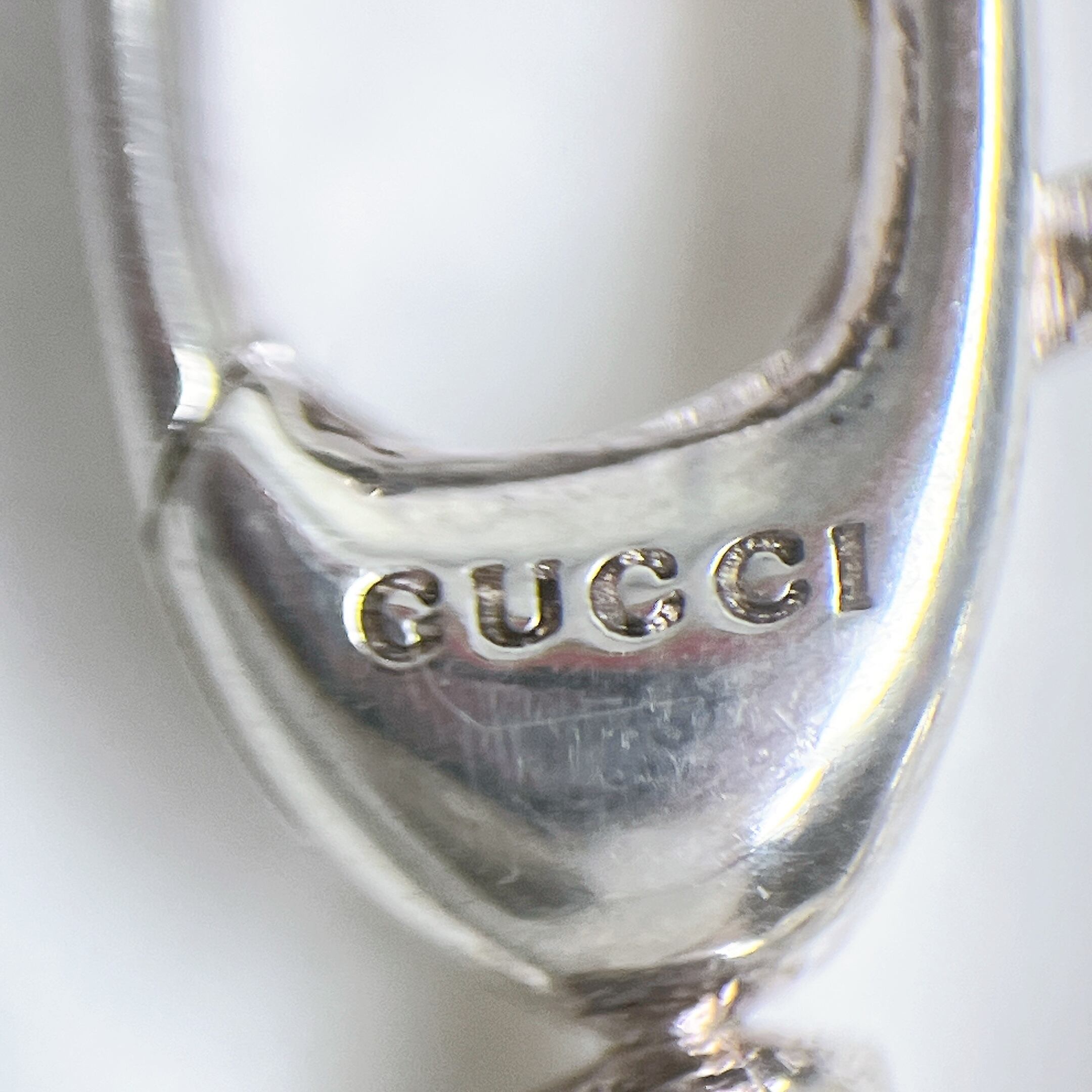商品説明:グッチならではのエレガンスとモダンな感性が融合した逸品。925スターリングシルバーを使用し、耐久性と美しい輝きを兼ね備えたユニセックスデザインのブレスレットです。シンプルながらも存在感のあるロゴプレートと、クラシックなチェーンデザインが特徴です。